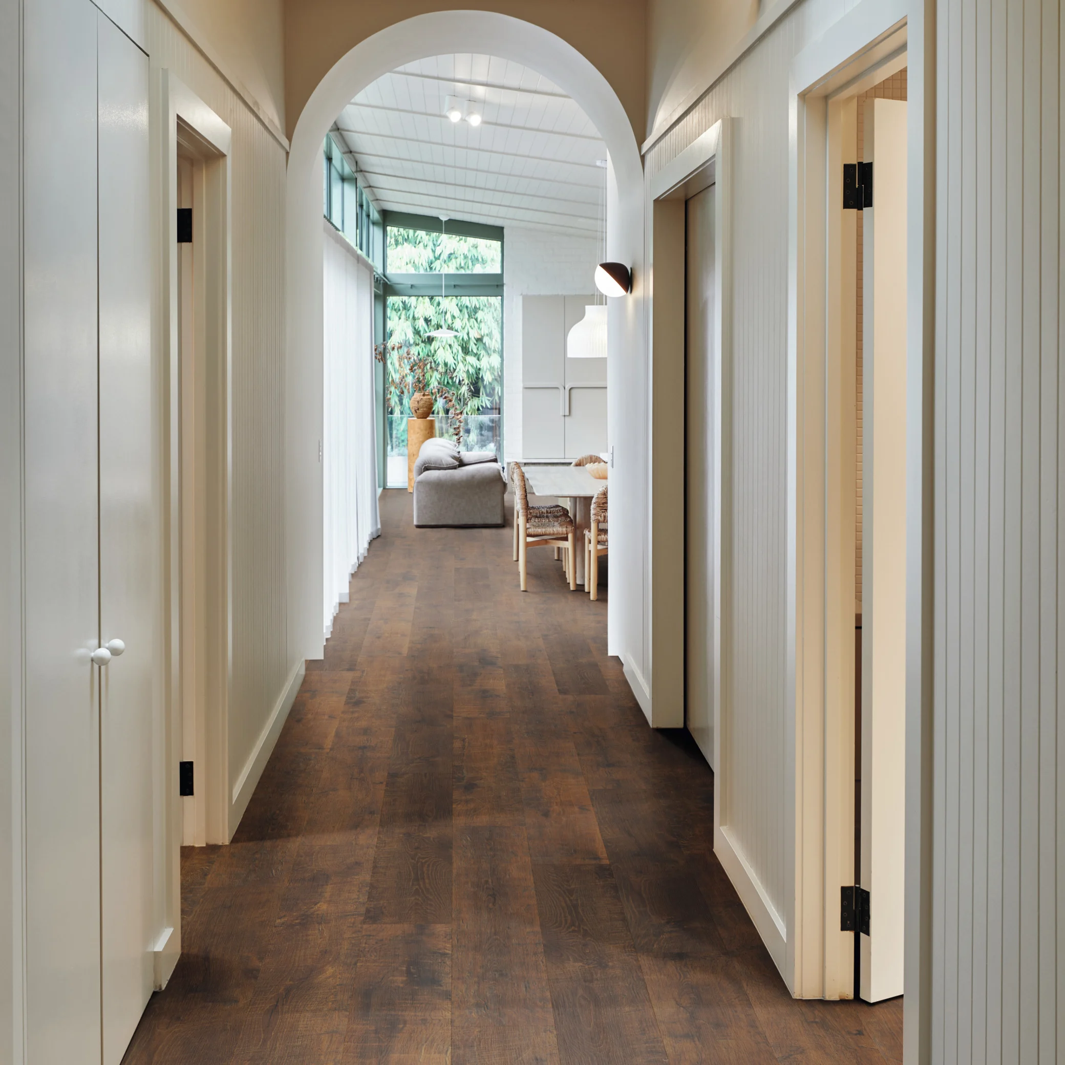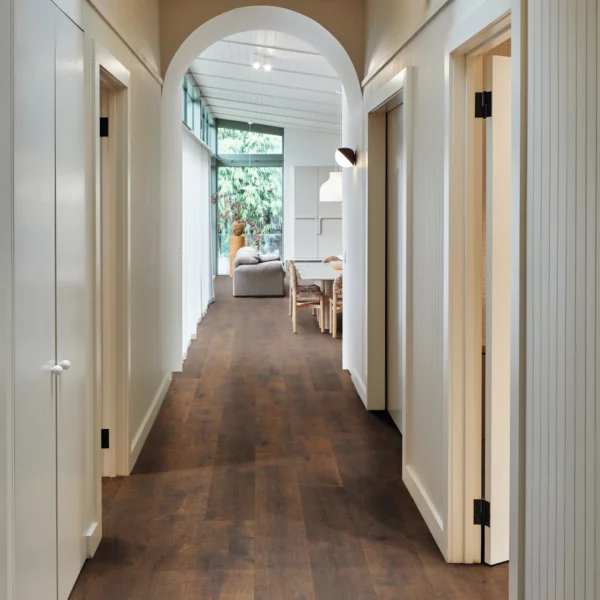 Capture the timeless elegance of aged French oak with the advanced performance of modern hybrid flooring. Antique French Oak showcases warm honey and soft brown tones with subtle grain detail, creating a classic European timber look that suits both contemporary and traditional interiors. Built on Karndean’s rigid K-Core™ construction, it’s 100% waterproof, stable in temperature changes, and ideal for kitchens, living rooms, and open-plan spaces. The integrated acoustic backing reduces impact noise, while the 5G click-lock system makes installation fast and glue-free. Enjoy natural oak charm with easy maintenance, durability, and long-lasting comfort underfoot.