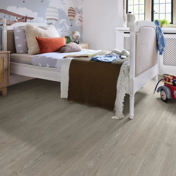 Add understated sophistication to your home with the cool elegance of grey oak and the resilience of modern hybrid flooring. Grey Loire Oak features soft grey tones with delicate oak grain detail, creating a versatile, contemporary timber look that suits both minimalist and classic interiors. Built with Karndean’s rigid K-Core™ construction, it’s 100% waterproof and highly stable, perfect for kitchens, bathrooms, and open-plan living. The integrated acoustic backing reduces impact sound, while the 5G click-lock system makes installation quick and glue-free. Enjoy the style of natural oak with the comfort, durability, and easy care of a premium hybrid floor.