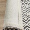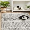 Levi rugs show their originality by utilizing different structures, neutral yet lifting tones and nomadic designs. The Levi Emma range presents several combinations of trellis, diamond and linear designs on white strokes laid in a black milieu imbibing a rustic ambiance to any home or room setting. This rich pile is made from 100% microfibre polyester from India. All edges are strengthened in firm yarns ensuring it’s neat and polished finish, they will surely add value and charm.