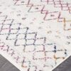 Oasis Nadia brings a timeless range transcending uniqueness and elegance. This specific range is characterized by a blast of multi head turning palette effect. It brings forth serrated linear and geometric patterns on cream context. The machine-made construction of this rug provides comfort and durability with heat set polypropylene and polyester to create a silky sheen finish. This stain resilient pile is easy to clean, and the colours would not run or bleed easily, while maintaining its luxurious and elegant appeal.