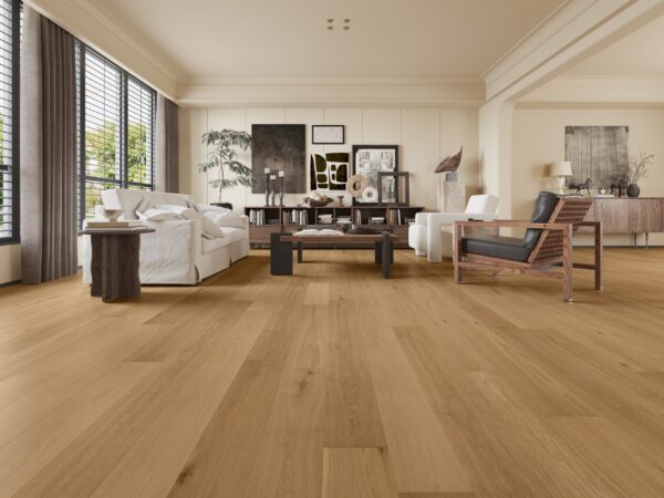 Create warm, inviting interiors with the timeless appeal of European oak in a soft light tan finish. Riverhill’s Classique Oak Light Tan features subtle grain patterns, gentle knots, and a smooth matte surface that beautifully balances natural charm with contemporary style. Its multi-layer engineered construction offers exceptional stability and durability, reducing seasonal movement and making it ideal for Australian homes. Pre-finished for easy care, this floor is perfect for living rooms, bedrooms, and open-plan spaces where both beauty and performance matter. Professional installation ensures a seamless, long-lasting result that elevates any interior.
