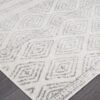 For those who appreciate extraordinary classic style, the Oasis Salma range offers an array of fashions idyllic for timeless interiors in need of a little glamour. Anchor your ensemble with rustic charm when you roll out this lovely rug. It can stand up to high-traffic and can handle sun exposure. It showcases a Persian-style pattern with scrolling intertwined diamond patterns and linear dropping center. It is detailed with distressed accents and awash in tones of white and grey.